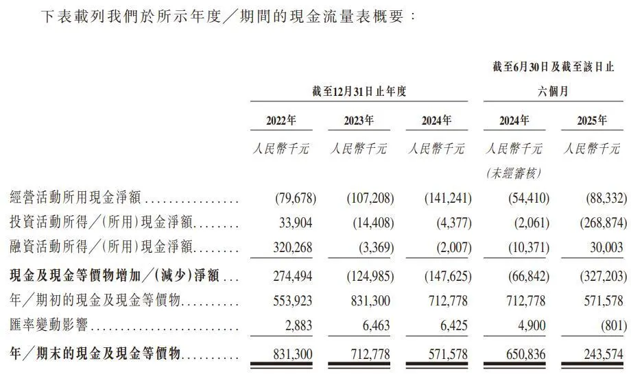 现金流方面,招股书显示,2022年~2024年,公司经营活动所用现金净额三年合计净流出3.28亿元,其中2024年净流出1.41亿元,主要因研发投入及应收账款增加所致。截至2025年6月30日,华大北斗持有的现金及现金等价物为2.44亿元。